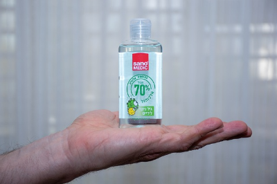 - 소량의 손소독제를 손에 짜서 겨드랑이, 목 뒤 등에 바릅니다.