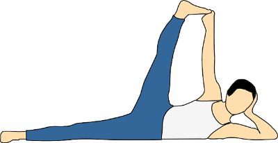 이때 한쪽 다리를 뒤로 뻗고 무릎을 곧게 펴주면,