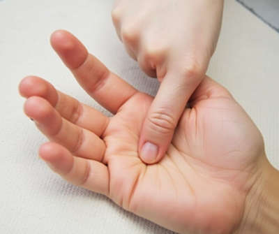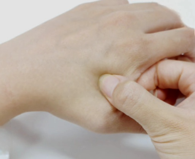 두 번째는 엄지와 검지 사이, 흔히 합곡혈이라고 불리는 자리입니다.